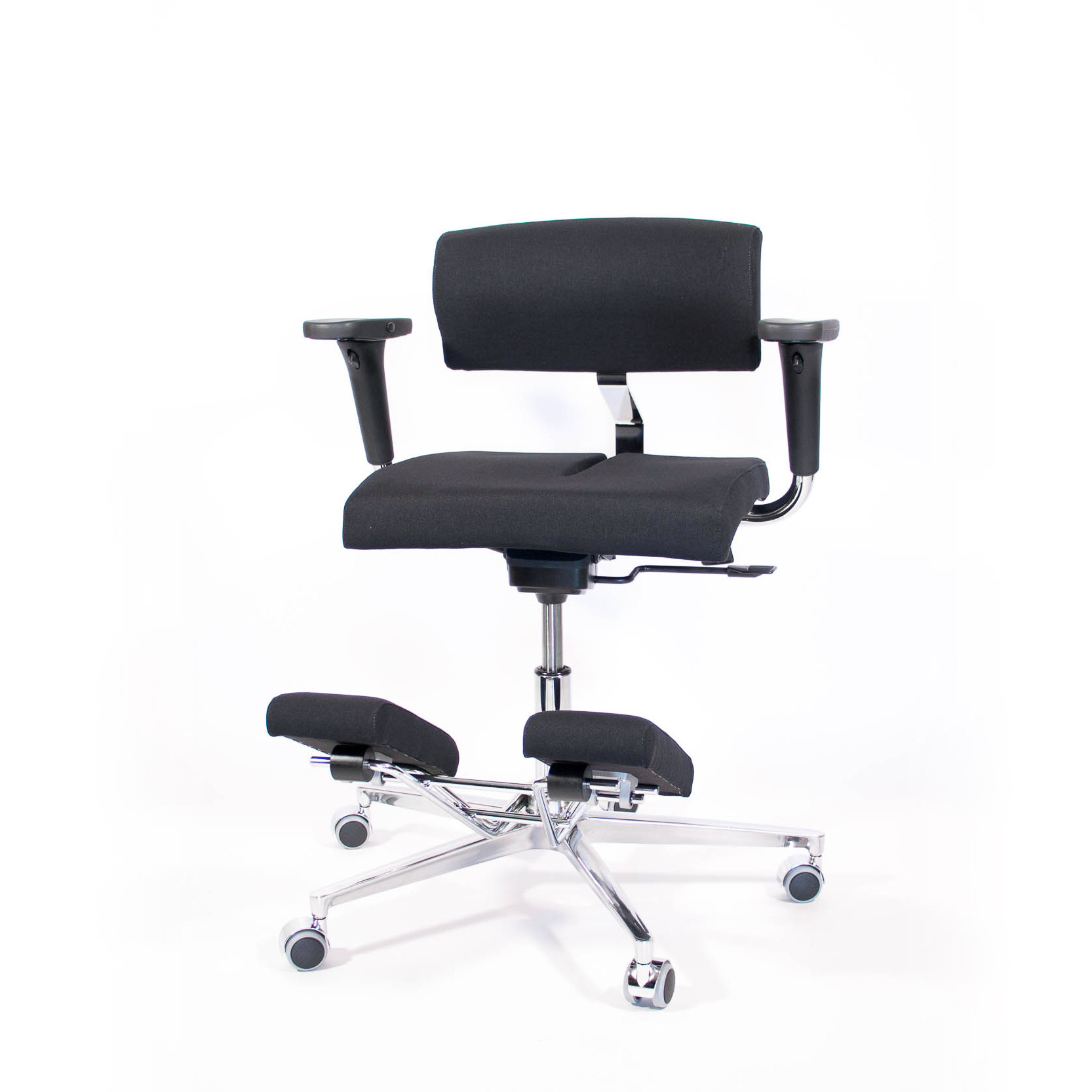 Poggia ginocchia regolabileRuotano a 360°, possono servire per appoggiare ginocchia o un piede nello spazio centrale. Inclinazione dei supporti variabile con 2 inclinazioni bloccabili o rimuovendo i fermi fornisce inclinazione libera e dinamica.